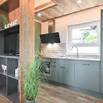 Le strutture self-catering dispongono di una cucina completamente attrezzata con un bollitore elettrico, un frigo e un forno. Il ristorante Hotel am Hopfensee offre cucina tedesca a 5 minuti a piedi da quest'appartamento. La fermata dell'autobus Hopfen Haus Hopfensee è situata a poca distanza dalla struttura.